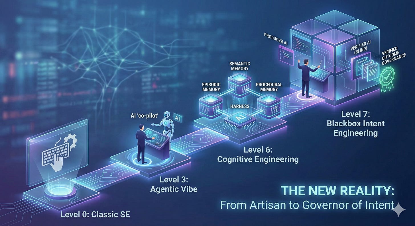 Software production has been democratized, made possible, much like photography was democratized by digital cameras. This didn’t mean that photographers went extinct though. The same is true of Software Engineering, we are evolving from multi-functional artisans of code, to meta-enginers of systems of agents, memory and intent. The work we used to do at Level 0, will now shift to being done mostly at mutually inclusive and complementary Levels 5 to 7.